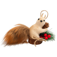 Zawieszka choinkowa wiewiórka z czapką Mikołaja futerkowa ozdoba na choinkę