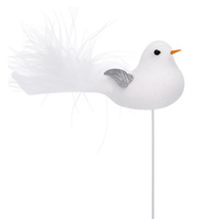 Ptaszek dekoracyjny biały na piku z piórami ozdoba świąteczna