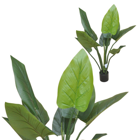 Wprowadź do swojego wnętrza odrobinę tropikalnego klimatu – bez podlewania i pielęgnacji! Ta sztuczna roślina doniczkowa o wysokości 120 cm doskonale imituje wygląd prawdziwej rośliny egzotycznej. Posiada duże, zielone liście o zróżnicowanym odcieniu, które dodają realizmu i naturalności całej kompozycji.