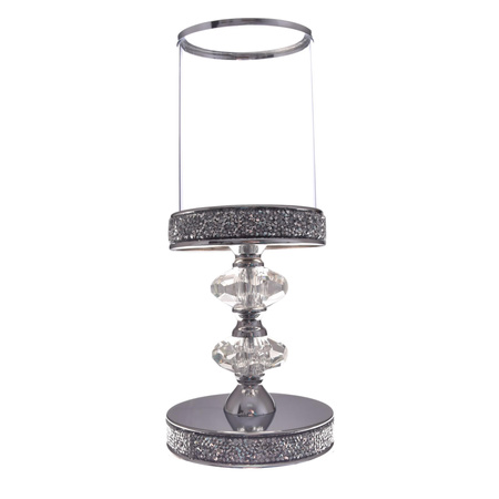 ŚWIECZNIK SZKLANY KIELICH SREBRNY GLAMOUR LAMPION CYLINDER KRYSZTAŁKI 29cm