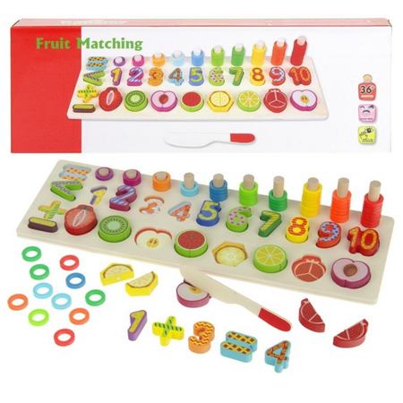 UKŁADANKA MONTESSORI OWOCE DREWNIANE SORTER KLOCKI DREWNIANA GRA PUZZLE