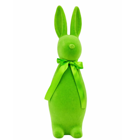 - Zajączek wielkanocny 31x9 cm w kolorze zielonym z kokardką – stylowa ozdoba na Wielkanoc i do wiosennych dekoracji wnętrz.